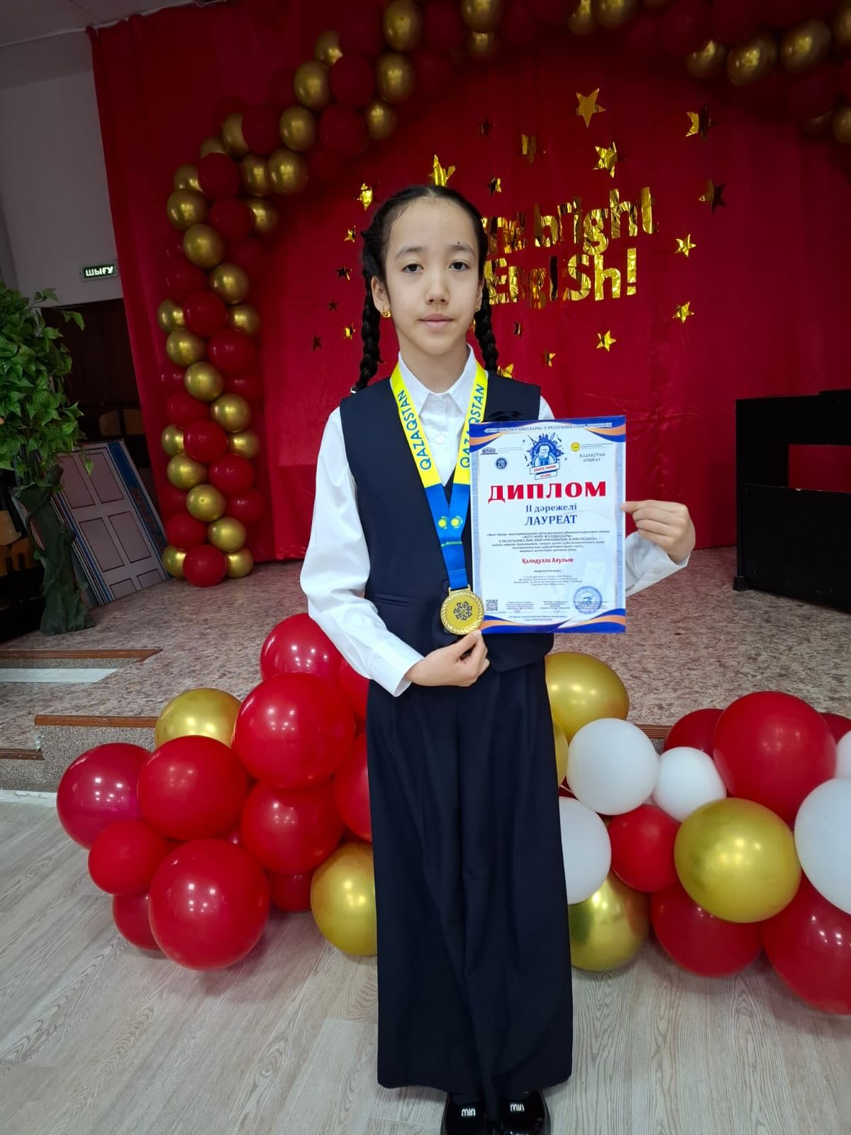 “Жеті Өнер”шығармашылық орталығының ұйымдастыруымен өткен “Жеті өнер жұлдыздары” Х Республикалық шығармашылық конкурсында ІІ дәрежелі дипломмен 4”ә” сынып оқушысы Қалидулла Аяулым марапатталып,өз өнерімен жарқын жетістікке жетті.Сынып жетекшісі:Абуғалиева Г.Т